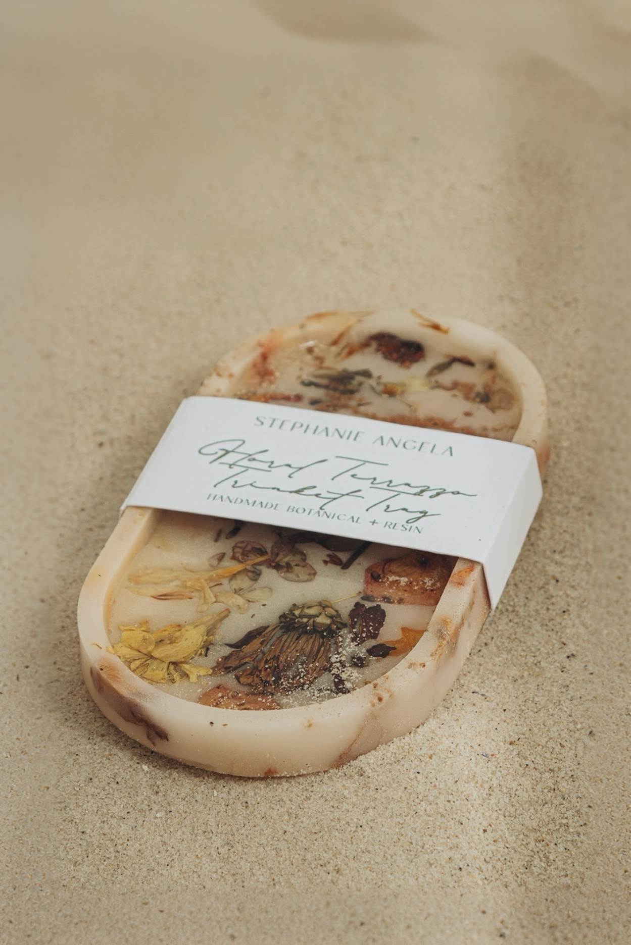 A delicate fusion of nature and function, this handmade resin tray preserves real botanicals in translucent form. No two are alike. Each tray is a small work of art, echoing the uniqueness of what it holds.