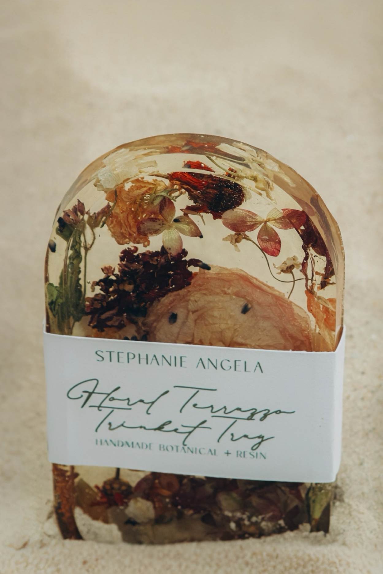 A delicate fusion of nature and function, this handmade resin tray preserves real botanicals in translucent form. No two are alike. Each tray is a small work of art, echoing the uniqueness of what it holds.